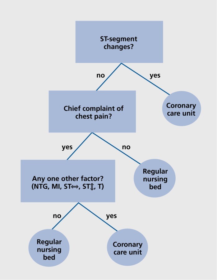 مردی میانسال با همراهی همسر نگرانش وارد بیمارستانی روستایی در میشیگان میشود. او از درد شدید قفسه سینه رنج میبرد. پزشک مسئول مشکوک به بیماری ایسکمیک قلبی حاد است، اما کاملاً مطمئن نیست. آیا باید بیمار را در بخش عادی برای مراقبت قرار دهد؟ اگر واقعاً ایسکمی حاد باشد، باید فوراً به بخش مراقبتهای ویژه قلب منتقل شود. از طرف دیگر، انتقال بیمورد به آن بخش هم هزینهبر است، هم کیفیت مراقبت از بیماران واقعاً نیازمند را کم میکند، و هم بیمار غیرضروری را در معرض عفونتهای بیمارستانی قرار میدهد.